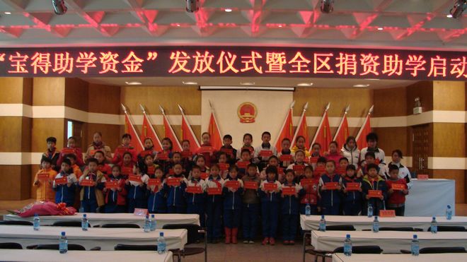 "寶得助學(xué)金":2006年至今,已連續(xù)四年每年捐資100萬(wàn)元,在全區(qū)范圍內(nèi)資助2000名享受低保家庭的貧困學(xué)生,每人500元。