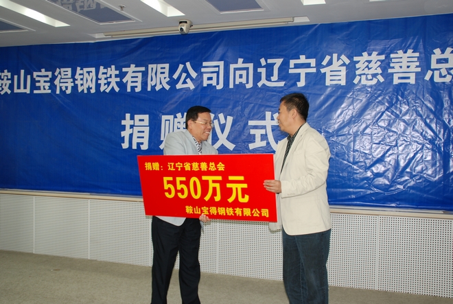 9月23日,公司助學(xué)助老捐贈(zèng)儀式在省慈善總會(huì)隆重舉行。公司總經(jīng)理張鐵漢向省慈善總會(huì)捐贈(zèng)人民幣550萬(wàn)元,這筆善款將用于鞍山市的助老、捐資助學(xué)等項(xiàng)目。