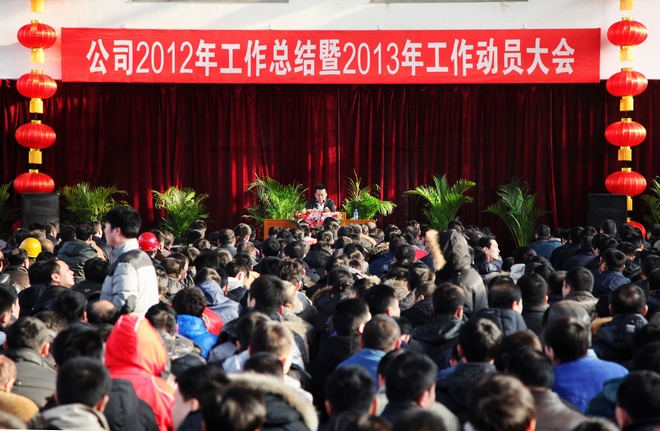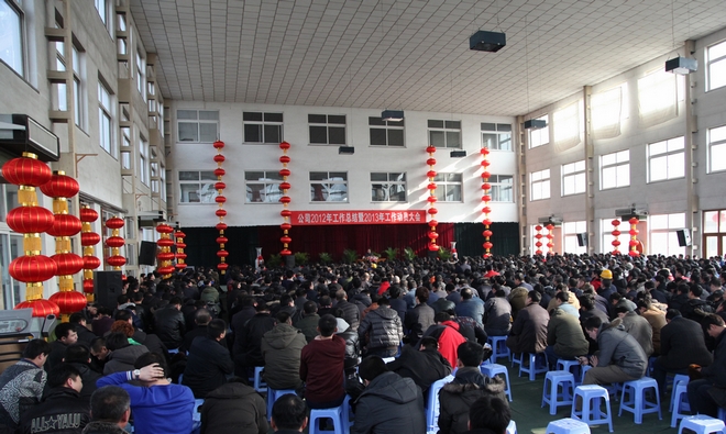 2月16日農歷初七,是春節(jié)后第一個工作日,公司1500名員工(不包括在崗員工)歡聚一堂,在網球場召開每年一度的全體職工大會。